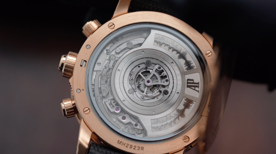 这套机械结构能以极低的能耗运行,能想象得出爱彼研发团队投入了多么惊人力量在这套系统的开发上,而且在这套系统中我们似乎能看一点点逆跳计时大师Jean Marc的影子。